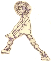 |   Jan & Brian - This pair of friends almost always showed up together. Don't know where they came from, they didn't hang out with anyone i knew during the week, but they loved to play volleyball. Jan, the shorter of the two, always had shorts on top of sweatpants, and Brian, who played the drums, he said, was very fond of wearing multiple sets of wristbands. they played to win. i like that.